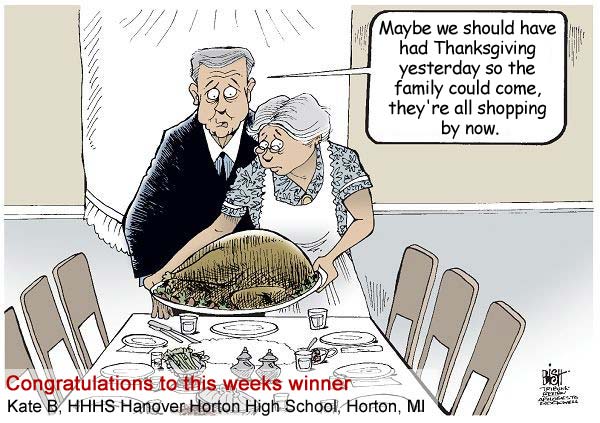 On December 8, 2013 we'll award a copy of the Best Editorial Cartoons of the Year: 2014 Edition to the student who submits the best caption for this cartoon.