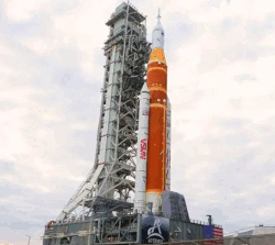 Moon rocket rolls out to the launch pad