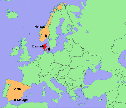 Q: A mouse crawled out of a passenger’s meal last week during a flight from Norway to Spain, forcing the airliner to make an unscheduled landing in Denmark. Passengers didn’t panic, but airlines strictly prohibit rodents onboard because the animals can chew through electrical wiring. Where is Denmark?